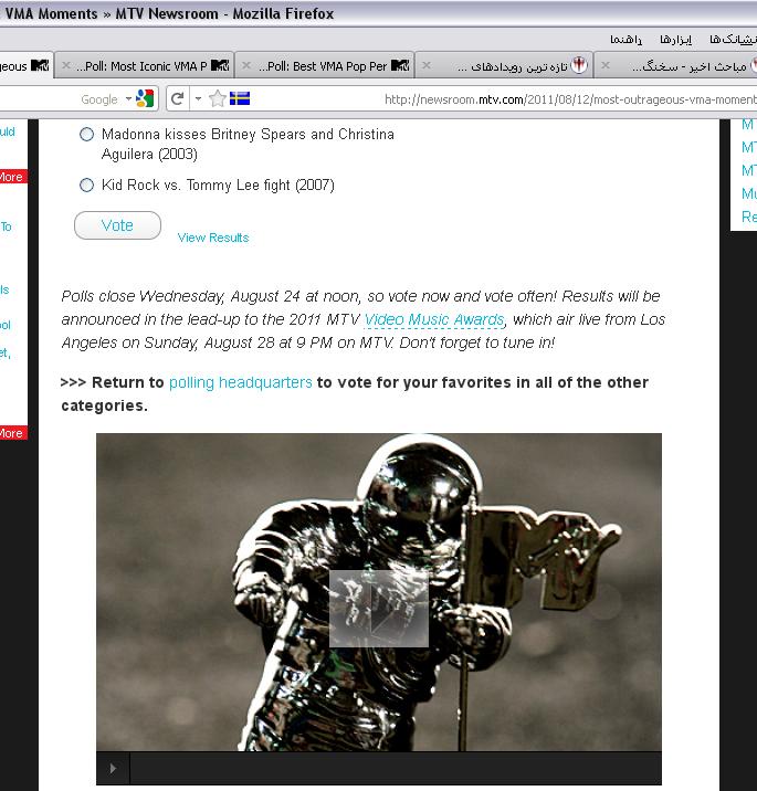 دوستان برای اینکه رای زننده ترین رویداد رو برای مایکل کم کنید به مدونا رای بدین و وقتی خواستین رای بدین صفحش رو بیارین وسط یعنی این شکلی: