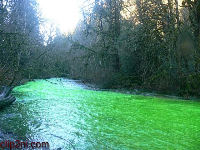اين رودخانه رنگی در پارک "گلد استيریم" کانادا جریان دارد. آب این رودخانه در ٢٩ دسامبر ٢٠١٠ به رنگ سبز نئونی تغيير رنگ داد. مردم نمیتوانستند آن چه که با چشم ميبینند را باور کنند. خیلي عجیب و غیر قابل باور بود. طبق تحقيقات محلی مشخص شد که این به دلیل یک واکنش شیمیايی در آب بوده که با مادهای به نام "فلو ئورسين" ميباشد آنها اعتقاد داشتند که بعضی افراد این ماده را در آب رودخانه ریختند تا شوخی سال نو را اجرا کنند، اما آن ماده سمي نبوده و ماهیهای رودخانه را نابود نکرده است.