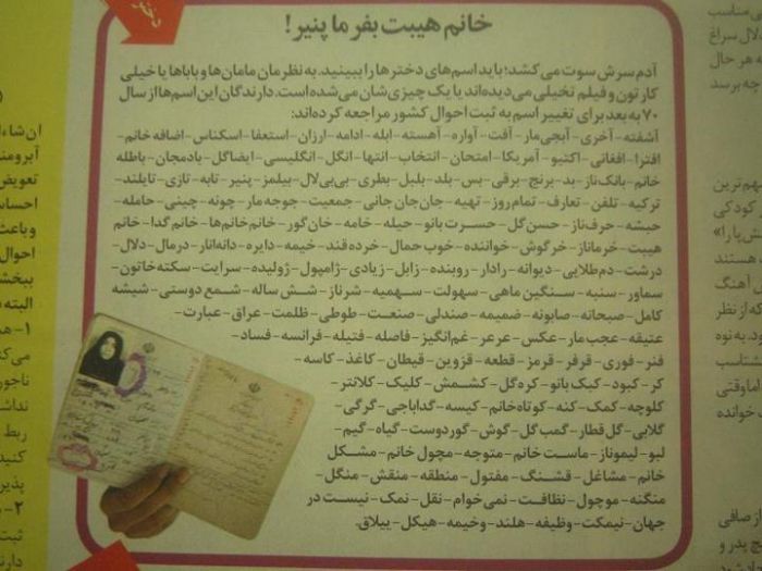 (دارندگان این اسامی از سال 70 به بعد برای تغییر اسم به ثبت احوال مراجعه کرده اند)