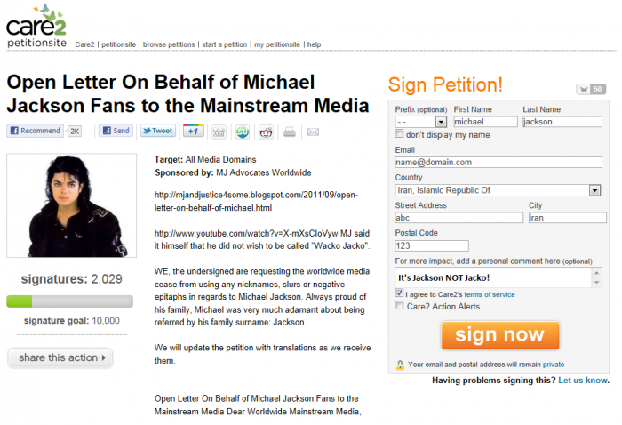 اعتراض جمعی هواداران مایکل جکسون به رسانهها: استفاده از واژهی "Jacko" ممنوع!